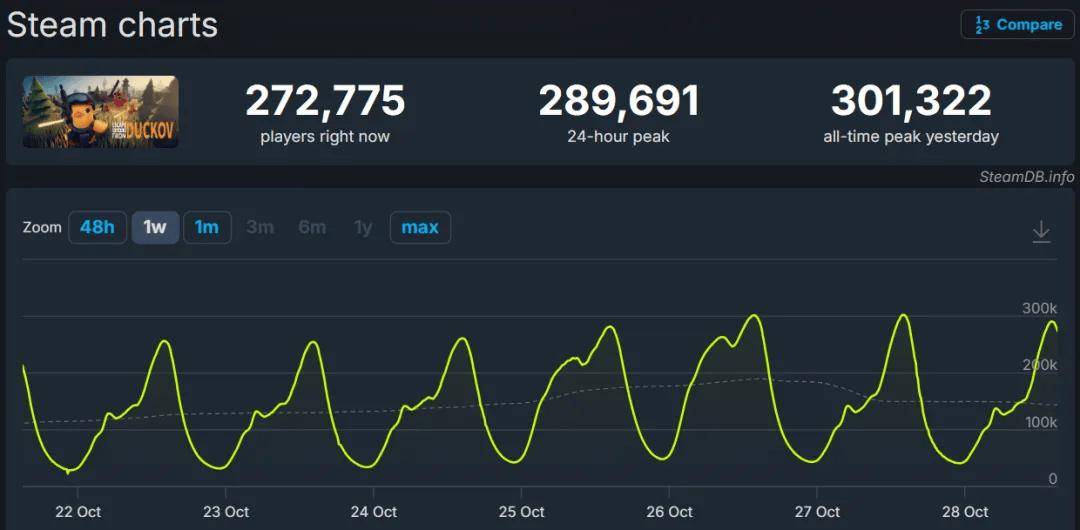 公开资料显示,《逃离鸭科夫》的销量海外占比为30%,在全球游戏直播平台Twitch上,《逃离鸭科夫》的观看人数与《战地6》不相上下,超越了《Apex英雄》《漫威争锋》等一系列大作。